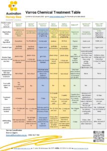 Refer to the AHBIC Varroa Chemical Treatment Table for a quick guide to modes of action and better treatment understanding.